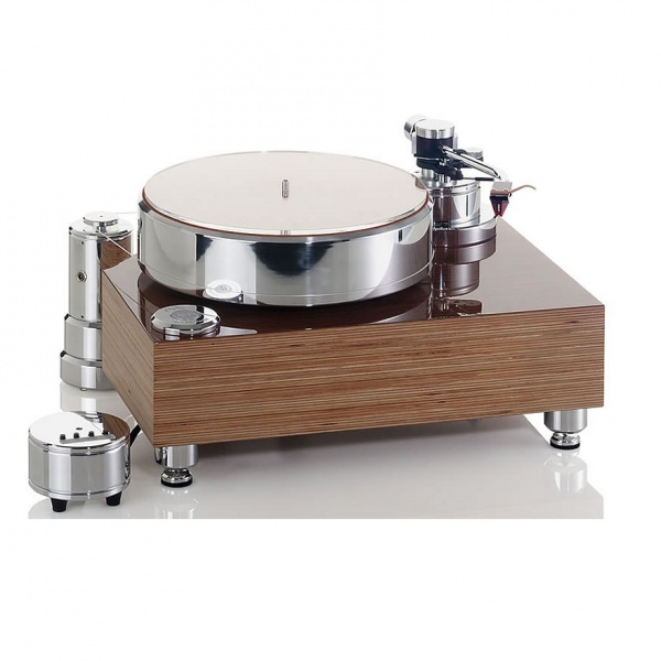 פטיפון הנעת רצועה, פלטה אלומיניום יצוק 20 ק״ג, גוף עץ MPX  בגובה של 10.5 ס"מ, זרוע קרבון WTB 213, משככי יציבות, מנוע ניפרד, מכונת תזמון מהירות אסינכרונית, משקל 45 ק״ג.